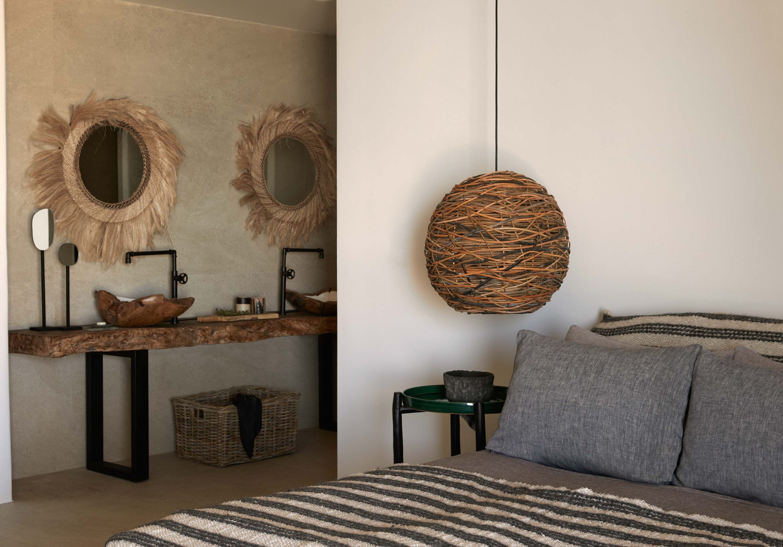 The delightfully appointed, boco-chic interiors comprise a spacious living room with stylish, luxuriously comfortable furnishings, complemented by a fully equipped dining area with mini kitchenette facilities, and state-of-the-art technology at your fingertips.