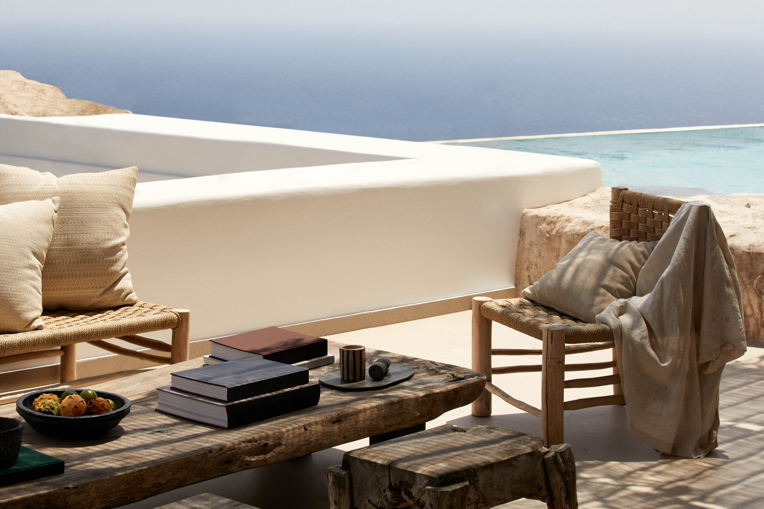 The large patio is calling for mesmerizing outdoors experiences, paving the way to the infinity pool with sandy terrace and the outdoor spa jacuzzi, inspiring hours of relaxation in the magical tranquility of the shimmering Aegean waters.