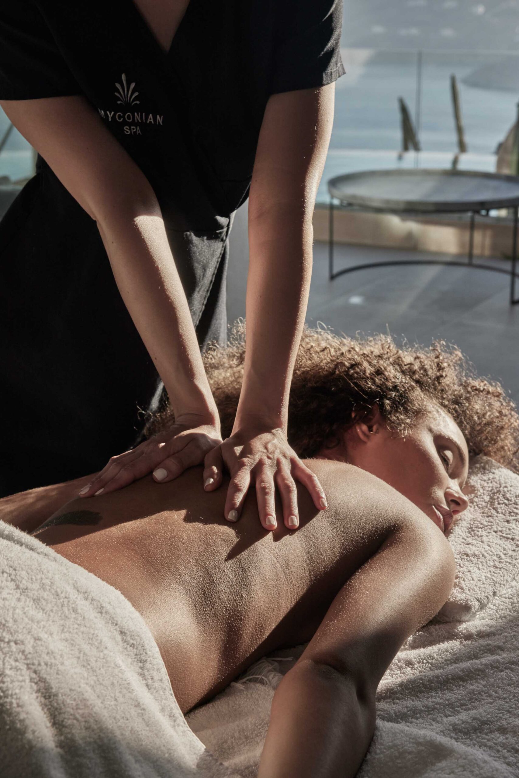 Indulge in exquisite Mykonos spa experiences with soothing spa therapies and heavenly beauty rituals grounded in the essence of Mediterranean summers and slow island living. From indulgent Mykonos massage sessions to pampering facials, our skilled spa specialists pamper you with wonderfully relaxing and rejuvenating treatments tailored to your needs, using organic local ingredients and premium products from some of the world’s foremost luxury skincare brands. Spa experiences at Panoptis Escape can be enjoyed at our hotel’s boutique spa or in the comfort of your luxe Mykonos villa.